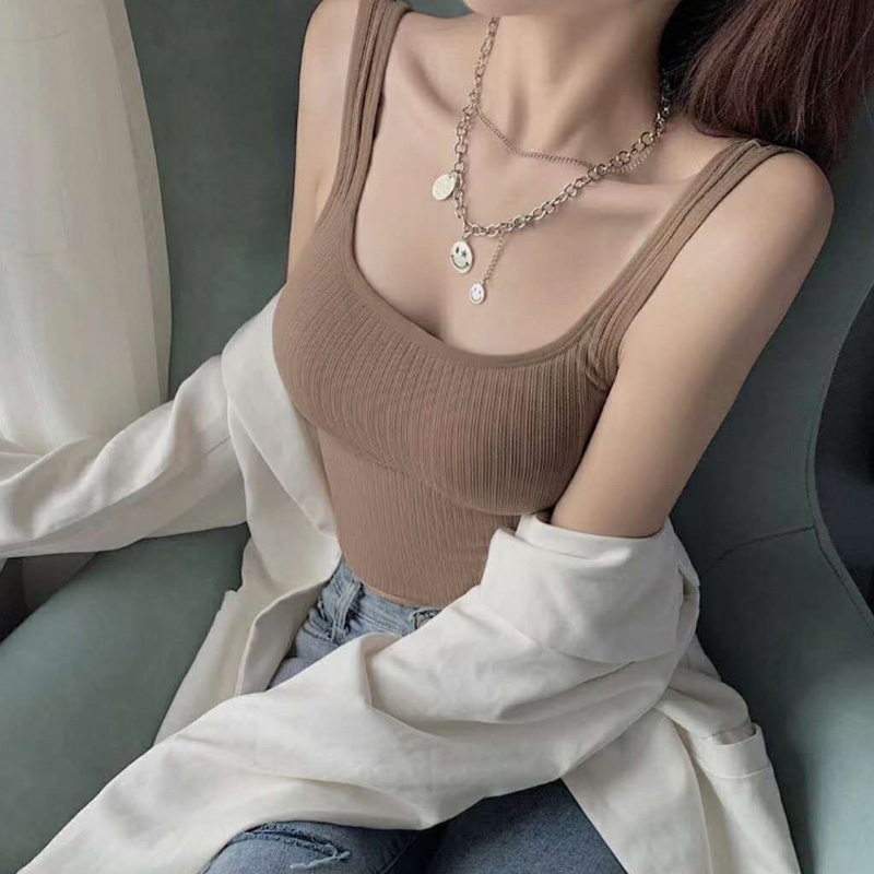 タンクトップ インナー 見せる カップ付タンクトップ ブラタンク 取り外し可能 パッド付き レディース ファッション トップス