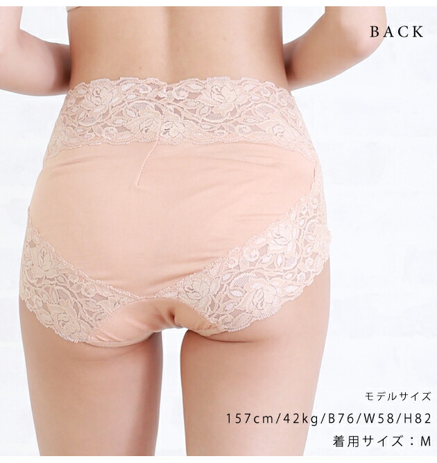 後脚口にレースを施しておりヒップラインがお洋服にひびきにくなっています。