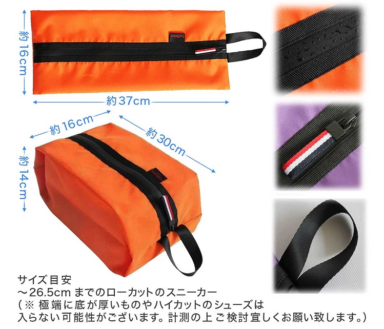 シューズケース 防水 コンパクトに折りたためる ファスナー 5色 ブラック パープル オレンジ レッド ベージュ スニーカー 折りたたみ コンパクト 水筒バッグ サッカー