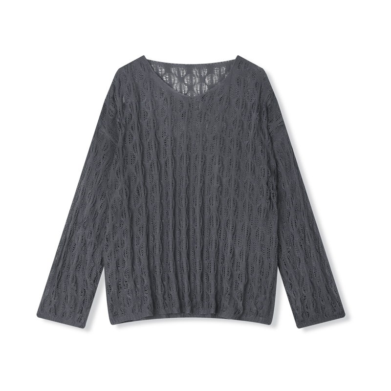 ニュアンス感ある立体的な模様の 透かし編みで抜け感抜群。レイヤードコーデが楽しめる◎