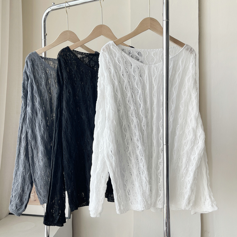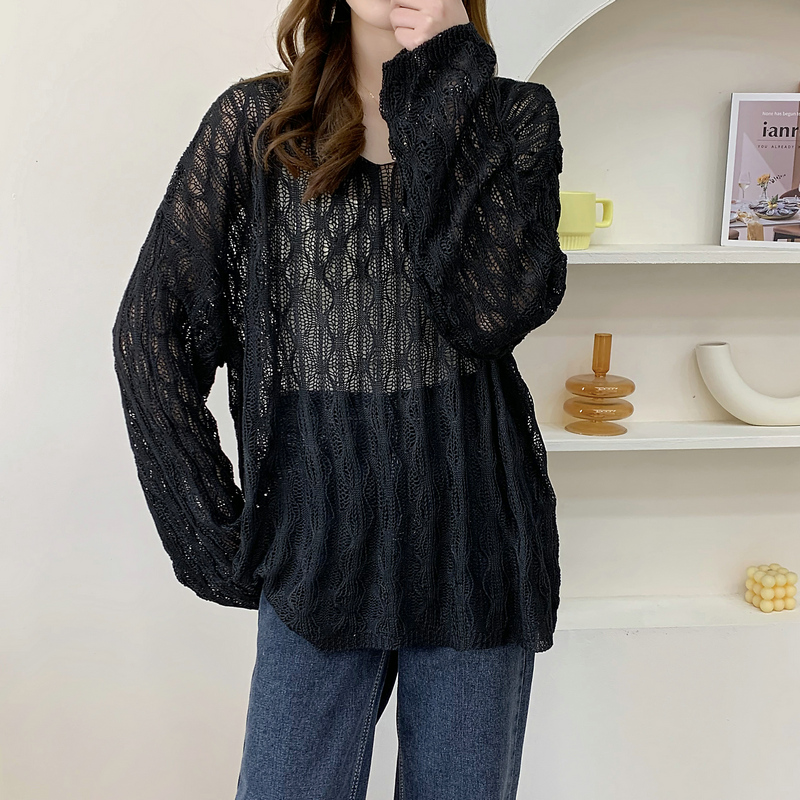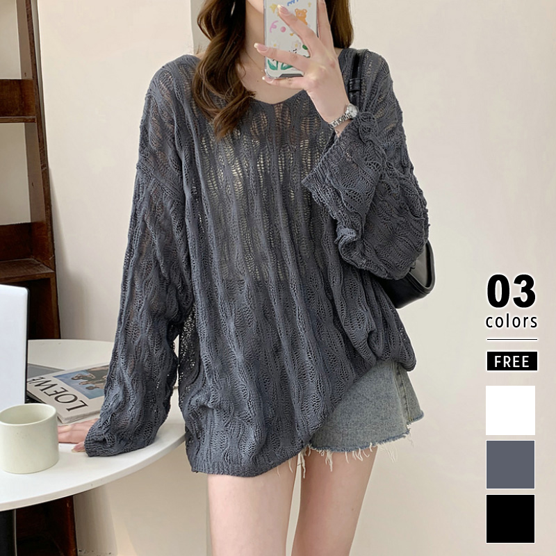サマー ニット メッシュ ニット 透かし編み メッシュニット トップス レディース シアー 長袖 シースルー オーバーサイズ ロング 透かし編みニット Vネック 透け感ニット 重ね着 ゆったり 体型カバー