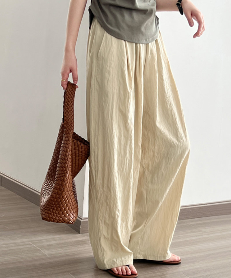 ワイドパンツ レディース 夏 涼しい イージーパンツ 太もも ゆったり 体型カバー 軽い さらさら ボトムス ウエストゴム 楽ちん 春 春夏 くしゅくしゅ パンツレディースファッション ボトムス パンツ