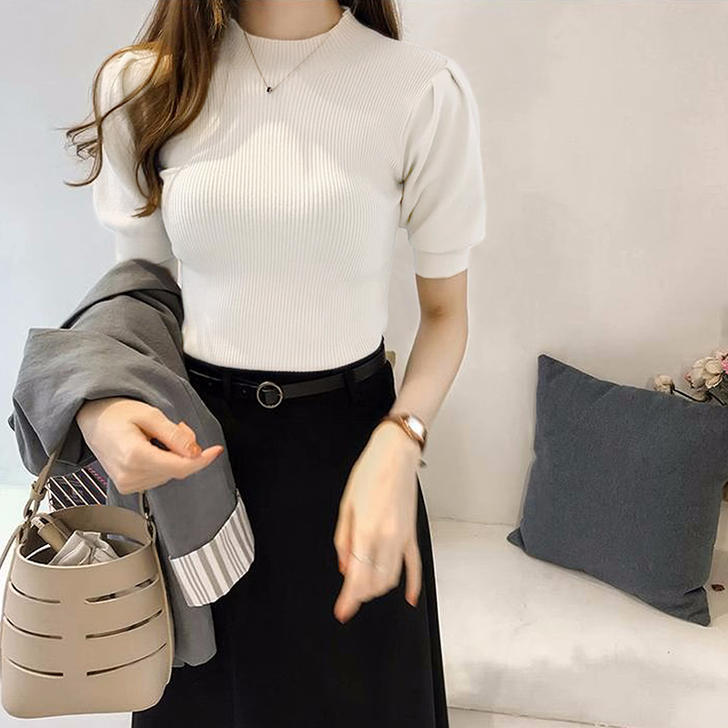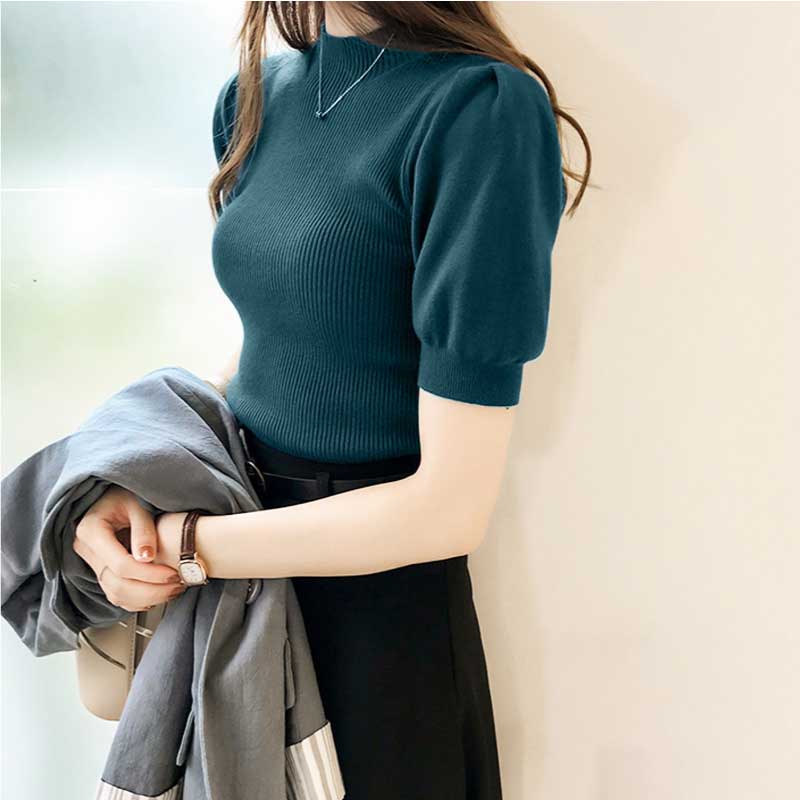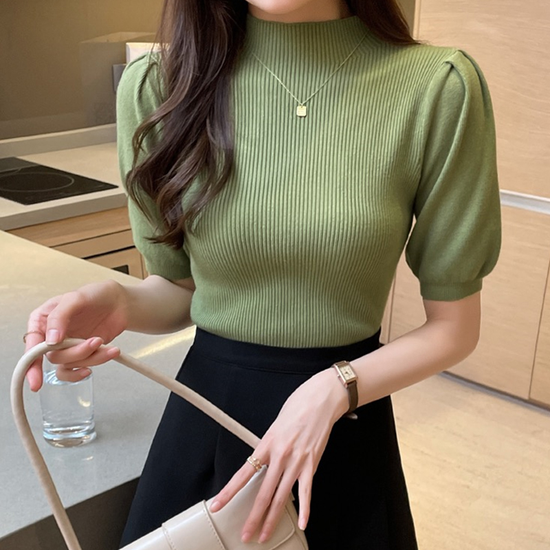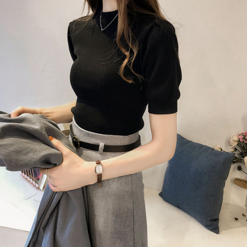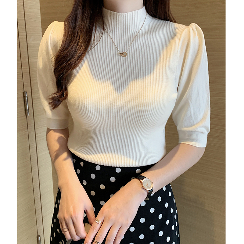 サマーニット 半袖 レディース 選べる全10色 オフィス カジュアルにおすすめな半袖 サマーニット レディース ファッション トップス ニット セーター セーター 五分袖 タートル ハイネック パフスリーブ 上品 きれいめ 春夏 秋冬 春 夏 秋 冬 秋色 韓国ファッション 20代 30代 40代 50代