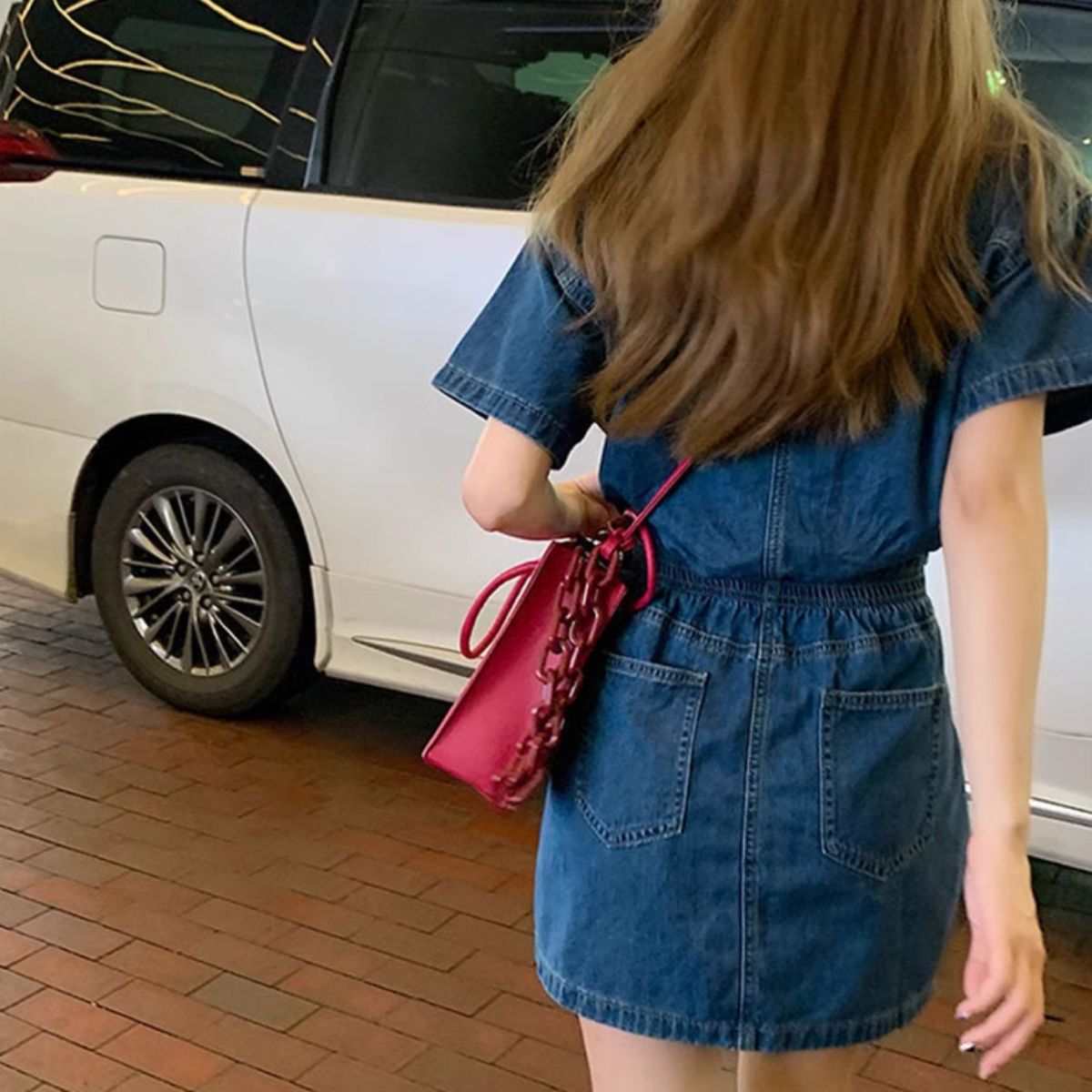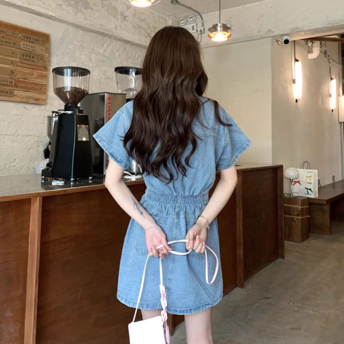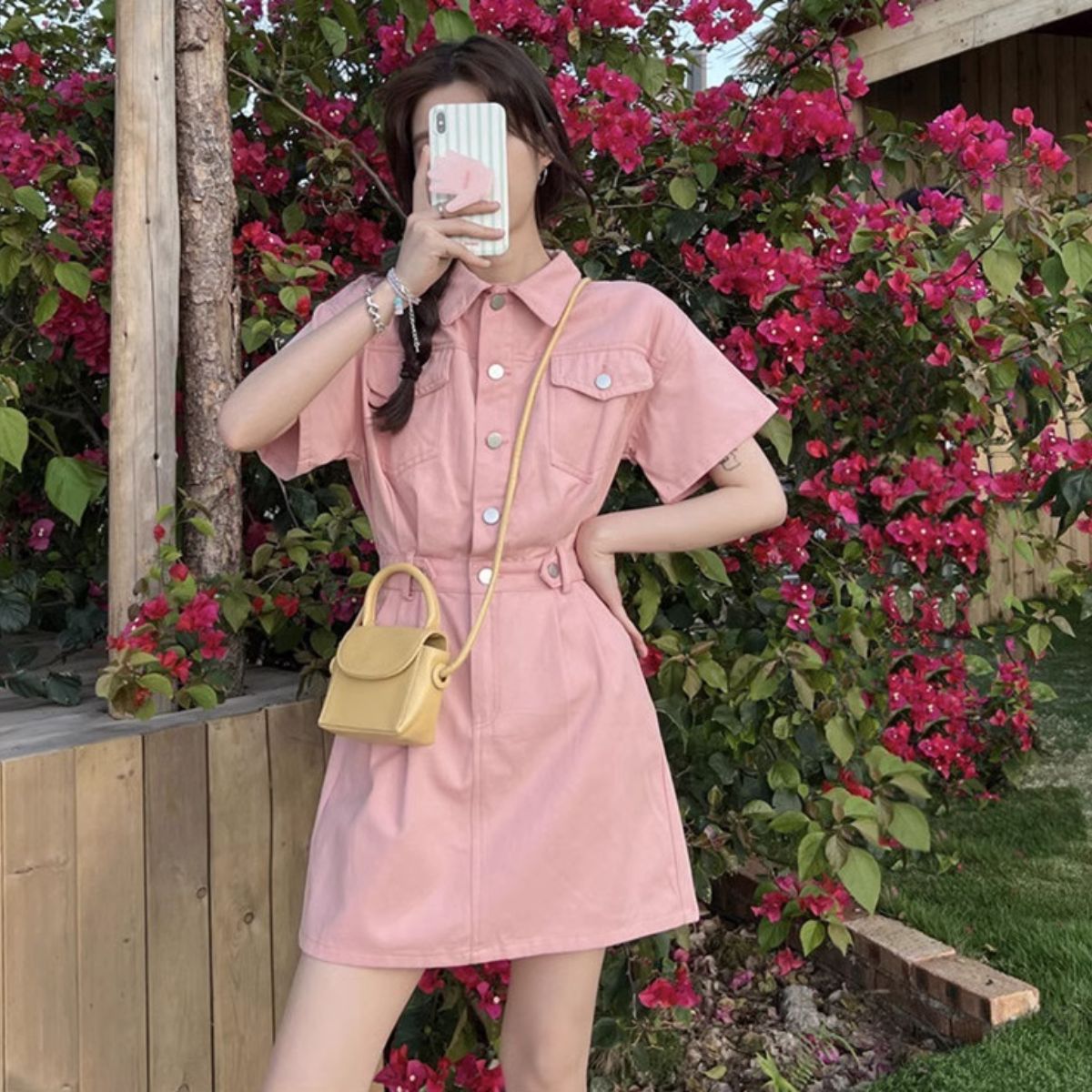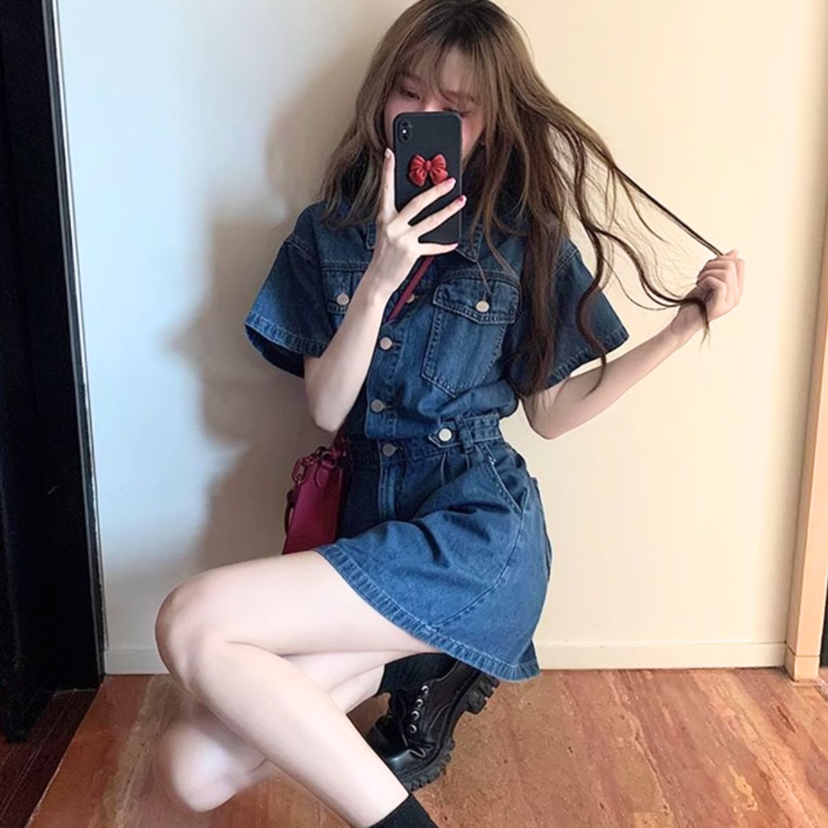 デニムワンピース 可愛い レディース 半袖 ミニワンピ スカート 韓国ファッション ひざ上 大きいサイズ フェス 衣装 お揃い イベント デニムワンピース ワンピース ツイル