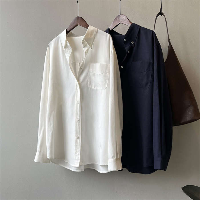 カジュアル シャツブラウス レディース 春秋 長袖 トップス 前開き シャツ シンプル通勤 無地 長袖 春 秋 ゆったり 大きいサイズ 上品 きれいめ シンプル 着回し 無地 体型カバ 30代 50代 40代