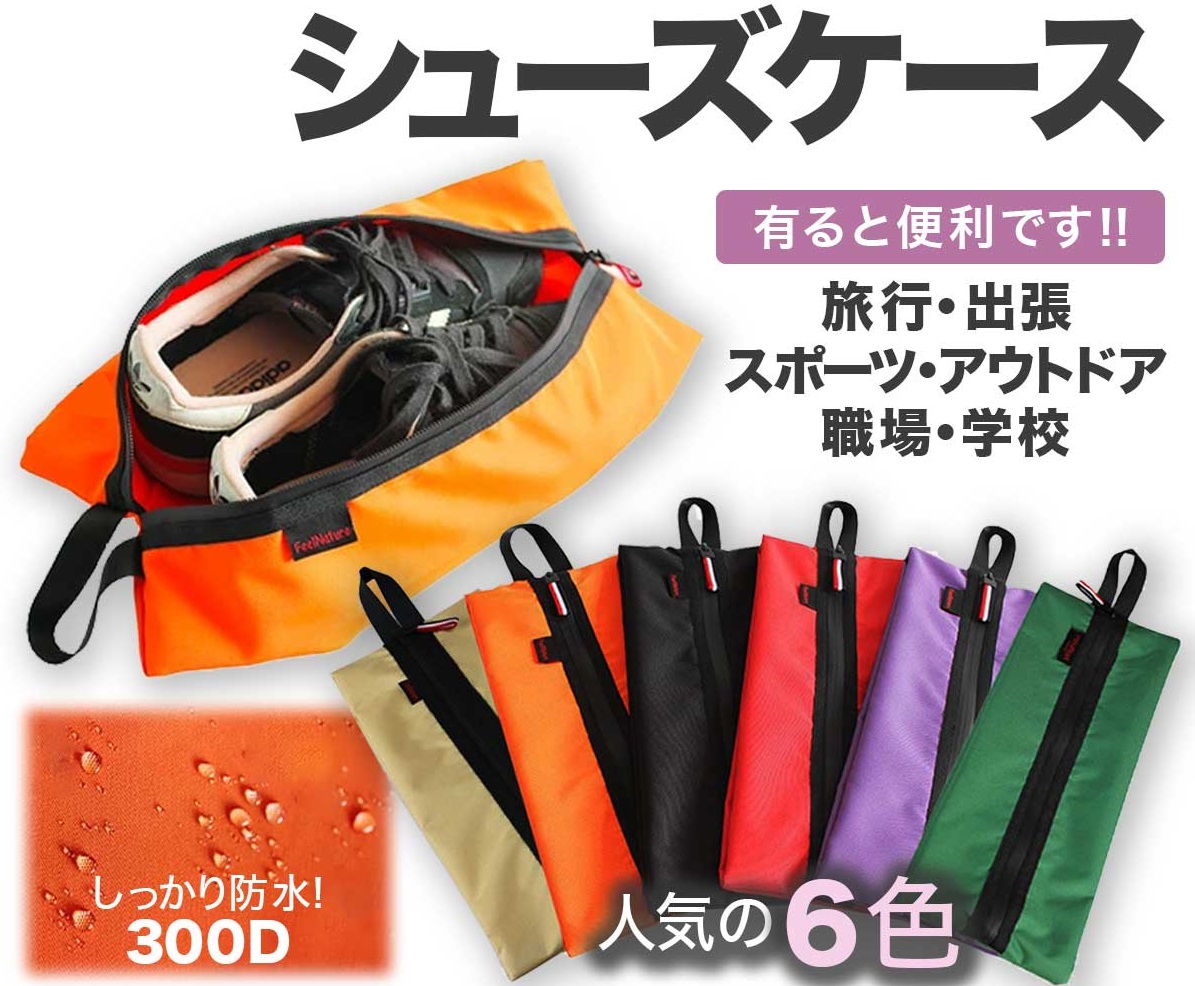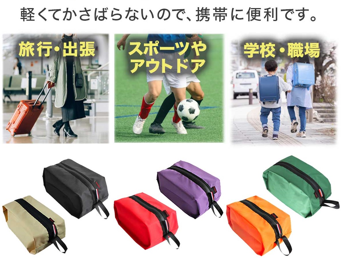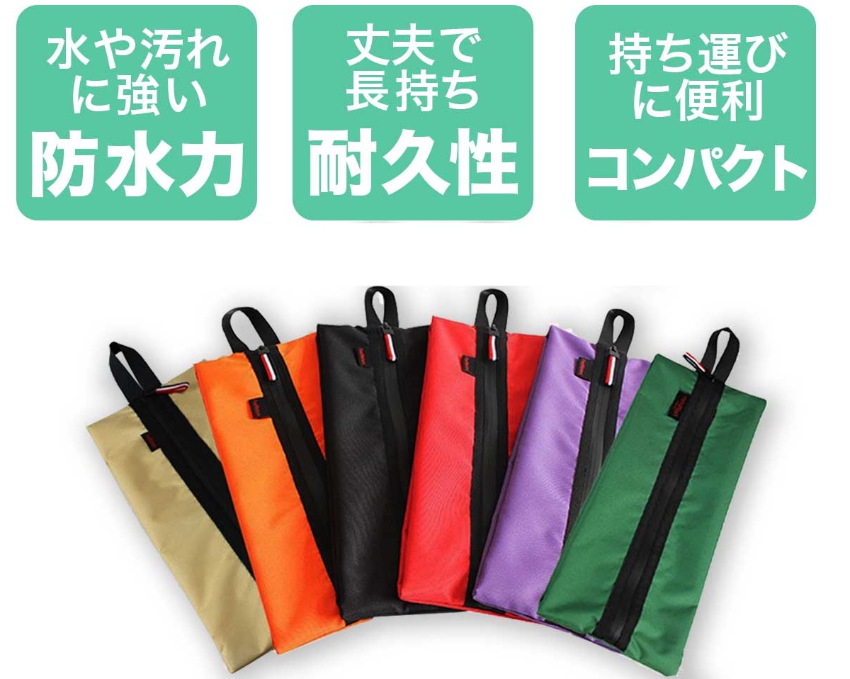 シューズケース 防水 コンパクトに折りたためる ファスナー 5色 ブラック パープル オレンジ レッド ベージュ スニーカー 折りたたみ コンパクト 水筒バッグ サッカー