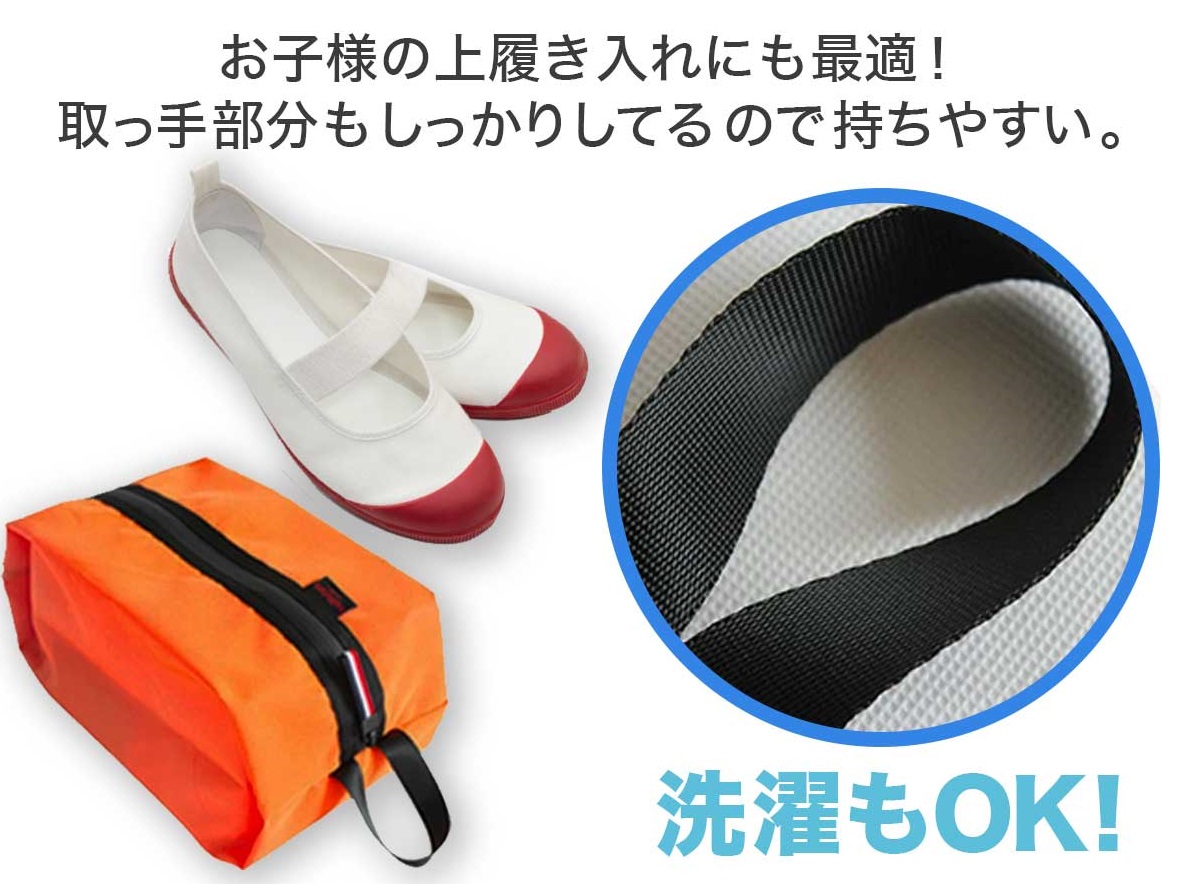 ジム通いの方や子供さんの上履き入れにもピッタリ。
