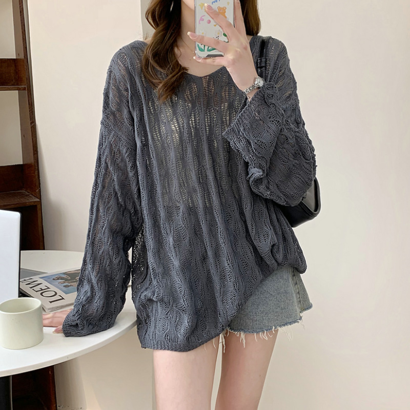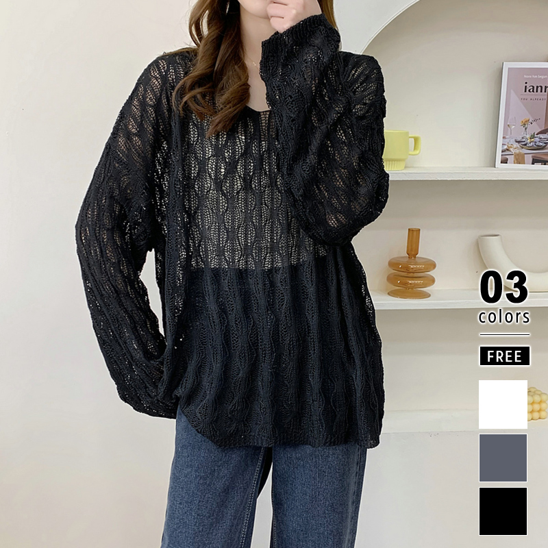 サマー ニット メッシュ ニット 透かし編み メッシュニット トップス レディース シアー 長袖 シースルー オーバーサイズ ロング 透かし編みニット Vネック 透け感ニット 重ね着 ゆったり 体型カバー
