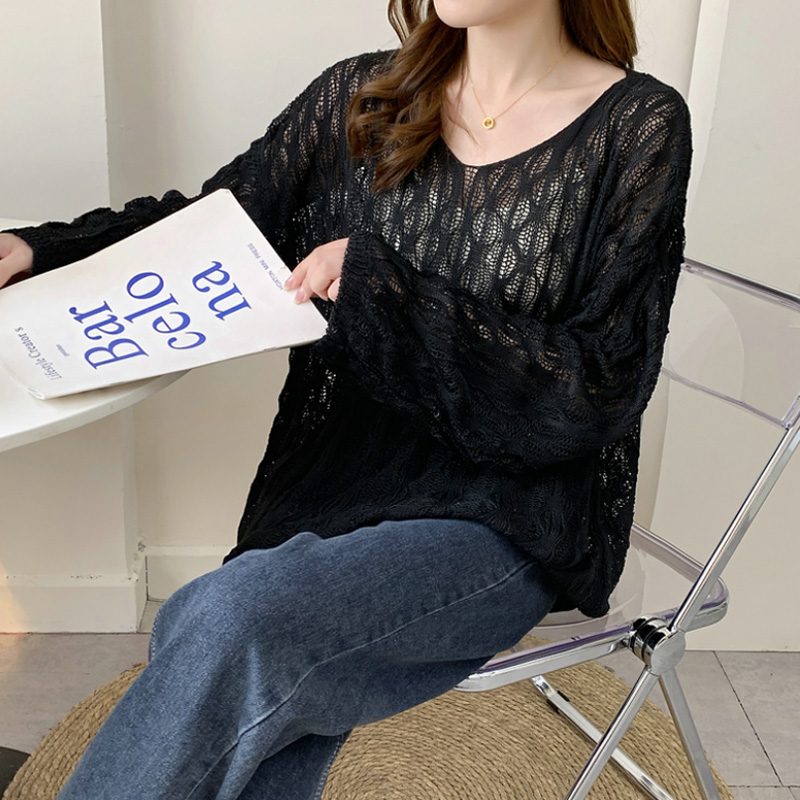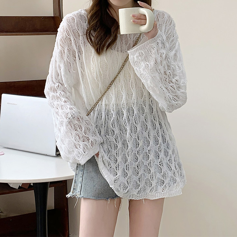 サマー ニット 透け 感 レディース シアー 長袖 シースルー オーバーサイズ ロング 透かし編みニッ 重ね着 ゆったり 体型カバー