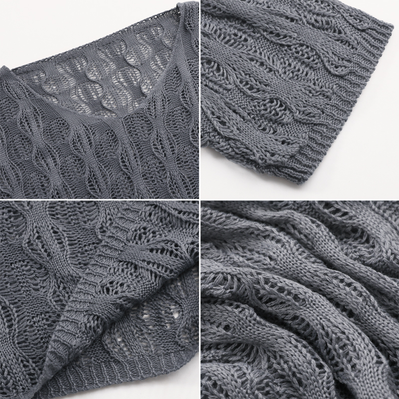 ニュアンス感ある立体的な模様の 透かし編みで抜け感抜群。レイヤードコーデが楽しめる◎