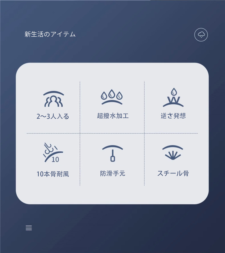 商品解説 ●コンパクトな折り畳み傘なのに、開くと120cmのビッグサイズ。 全身をすっぽり覆えるので、足元やリュックも。