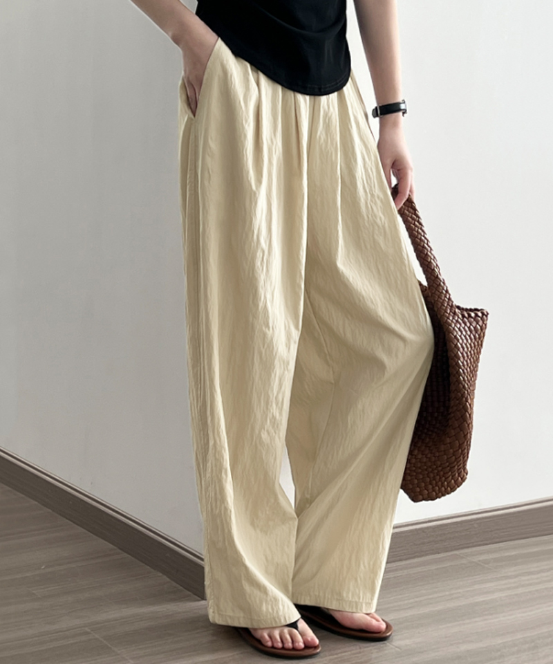 ワイドパンツ レディース 夏 涼しい イージーパンツ 太もも ゆったり 体型カバー 軽い さらさら ボトムス ウエストゴム 楽ちん 春 春夏 くしゅくしゅ パンツレディースファッション ボトムス パンツ
