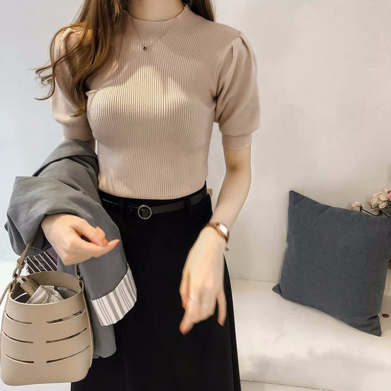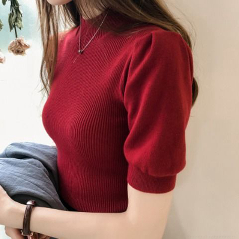 サマーニット 半袖 レディース 選べる全10色 オフィス カジュアルにおすすめな半袖 サマーニット レディース ファッション トップス ニット セーター セーター 五分袖 タートル ハイネック パフスリーブ 上品 きれいめ 春夏 秋冬 春 夏 秋 冬 秋色 韓国ファッション 20代 30代 40代 50代