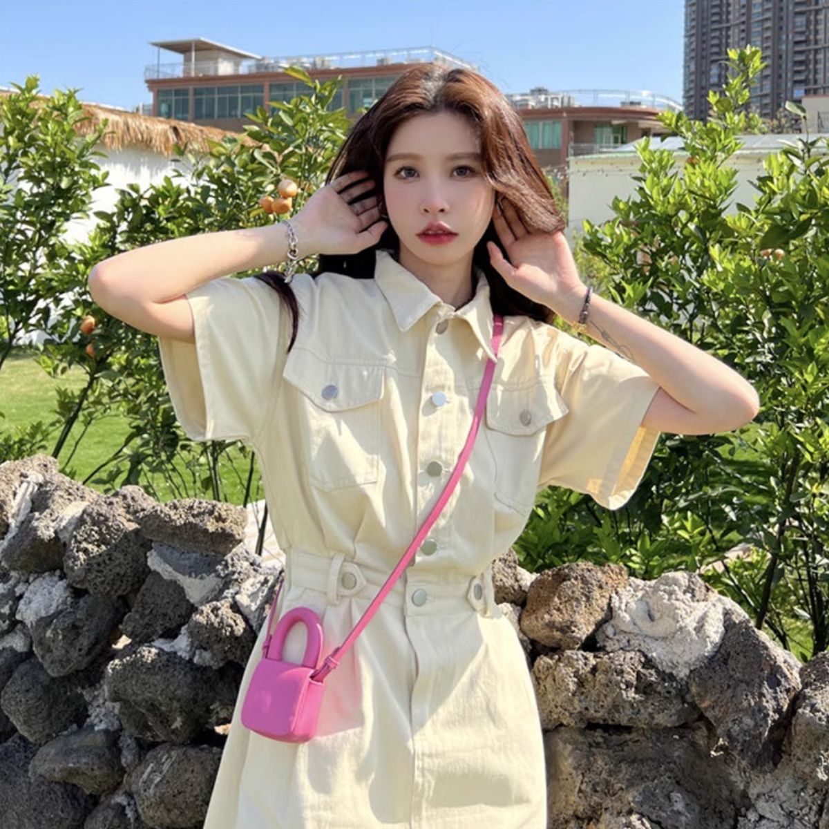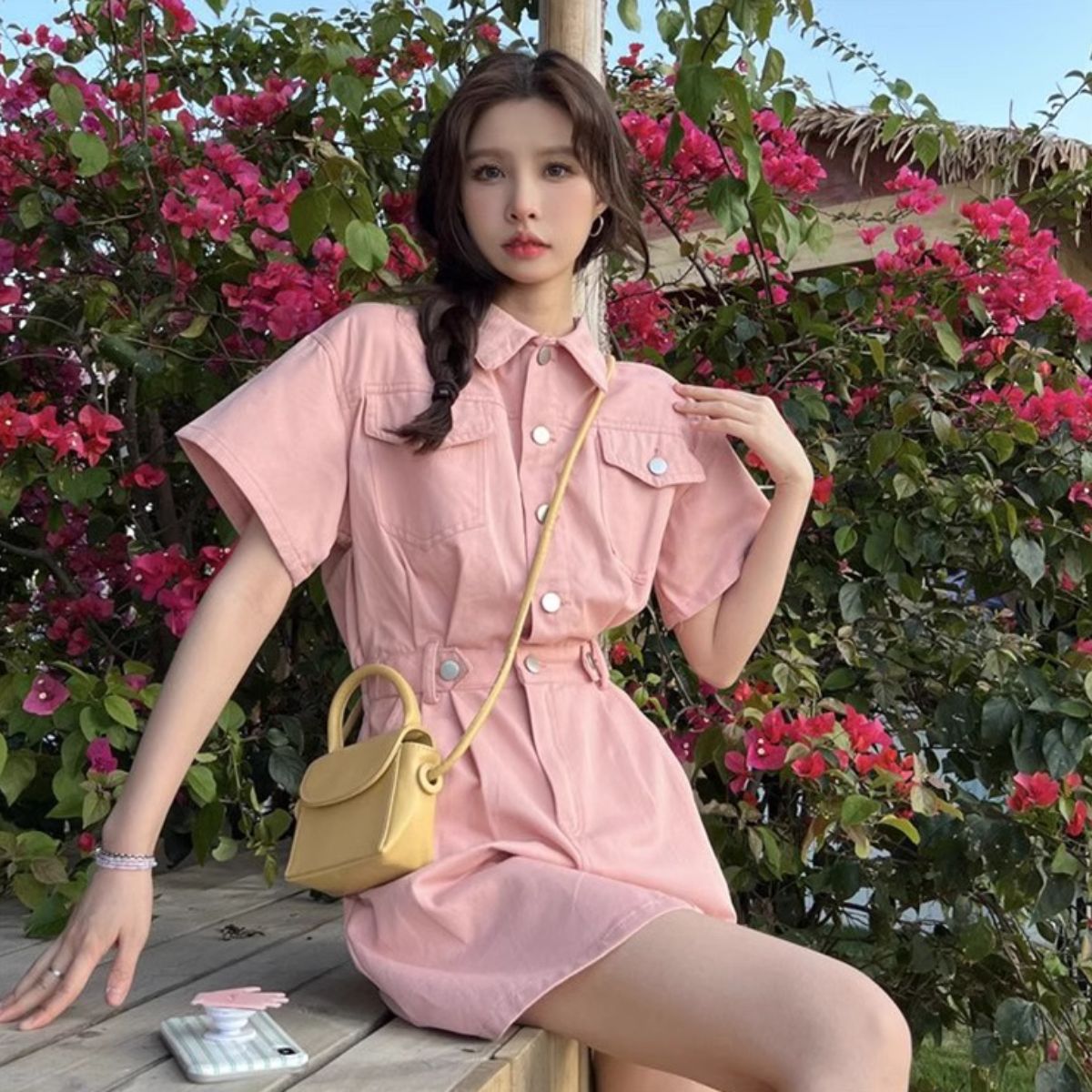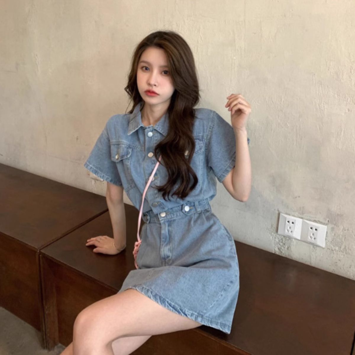 デニムワンピース 可愛い レディース 半袖 ミニワンピ スカート 韓国ファッション ひざ上 大きいサイズ フェス 衣装 お揃い イベント デニムワンピース ワンピース ツイル