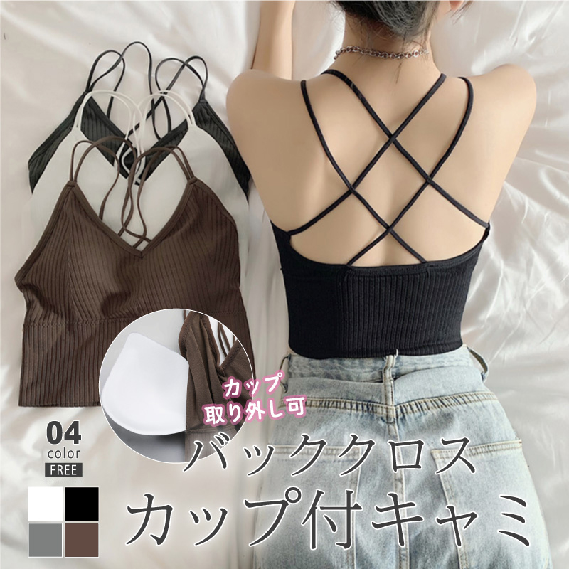 キャミソール カップ付き 背中 ダブルバッククロスがおしゃれ カップ付きブラトップ ブラキャミレディースファッション トップス