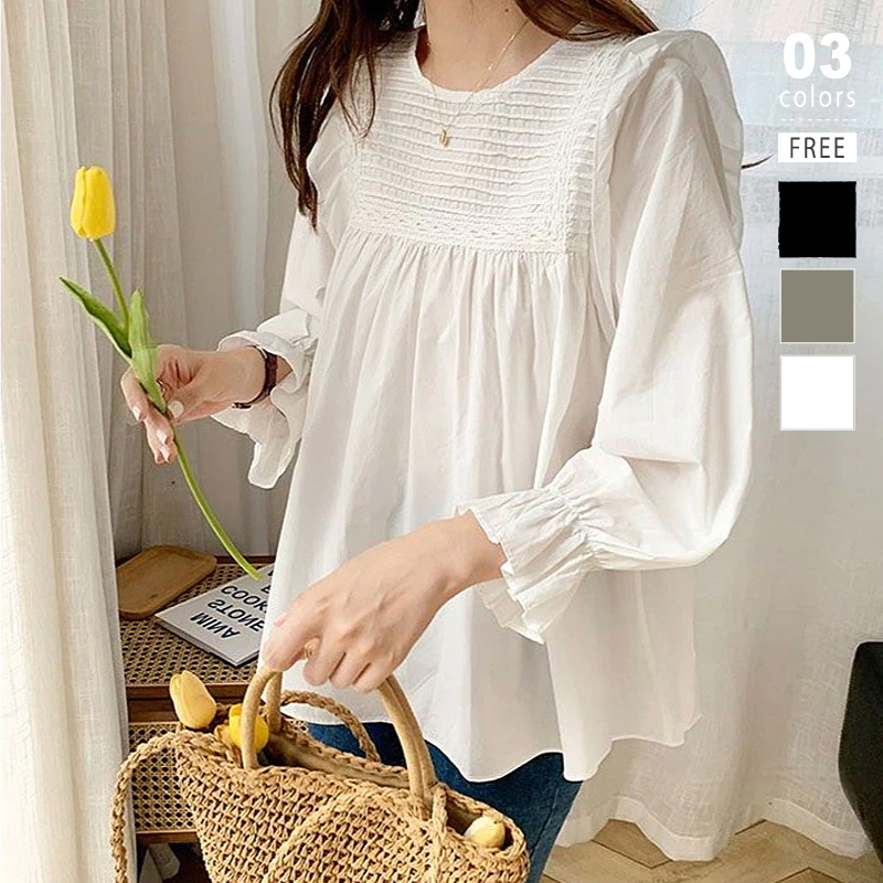 レディース ブラウス 長袖 春 秋 刺繍ブラウス ボリューム袖 薄手 きれいめ ゆったり 大きいサイズ 体型カバー 大人可愛い シンプル 透け感
