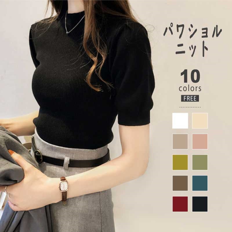 サマーニット 半袖 レディース 選べる全10色 レディース ファッション トップス ニット セーター セーター 五分袖 タートル ハイネック パフスリーブ 上品 きれいめ 春夏 秋冬 春 夏 秋 冬 秋色 韓国ファッション 20代 30代 40代 50代